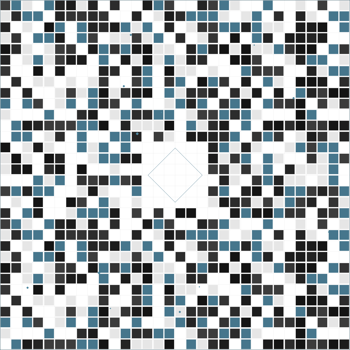 コードは何度かイテレーションを経た。最初のバージョンはランダムすぎてノイジーな画像を生成した。デザインの観点からClaudeにフィードバックした:「隣接するセル間のコントラストが低すぎる。画像の中心にもっと視覚的な重みが必要。カラーパレットはランダムノイズではなく、まとまりを感じる必要がある。」Claudeは視覚的フィードバックに基づいてアルゴリズムを調整した。